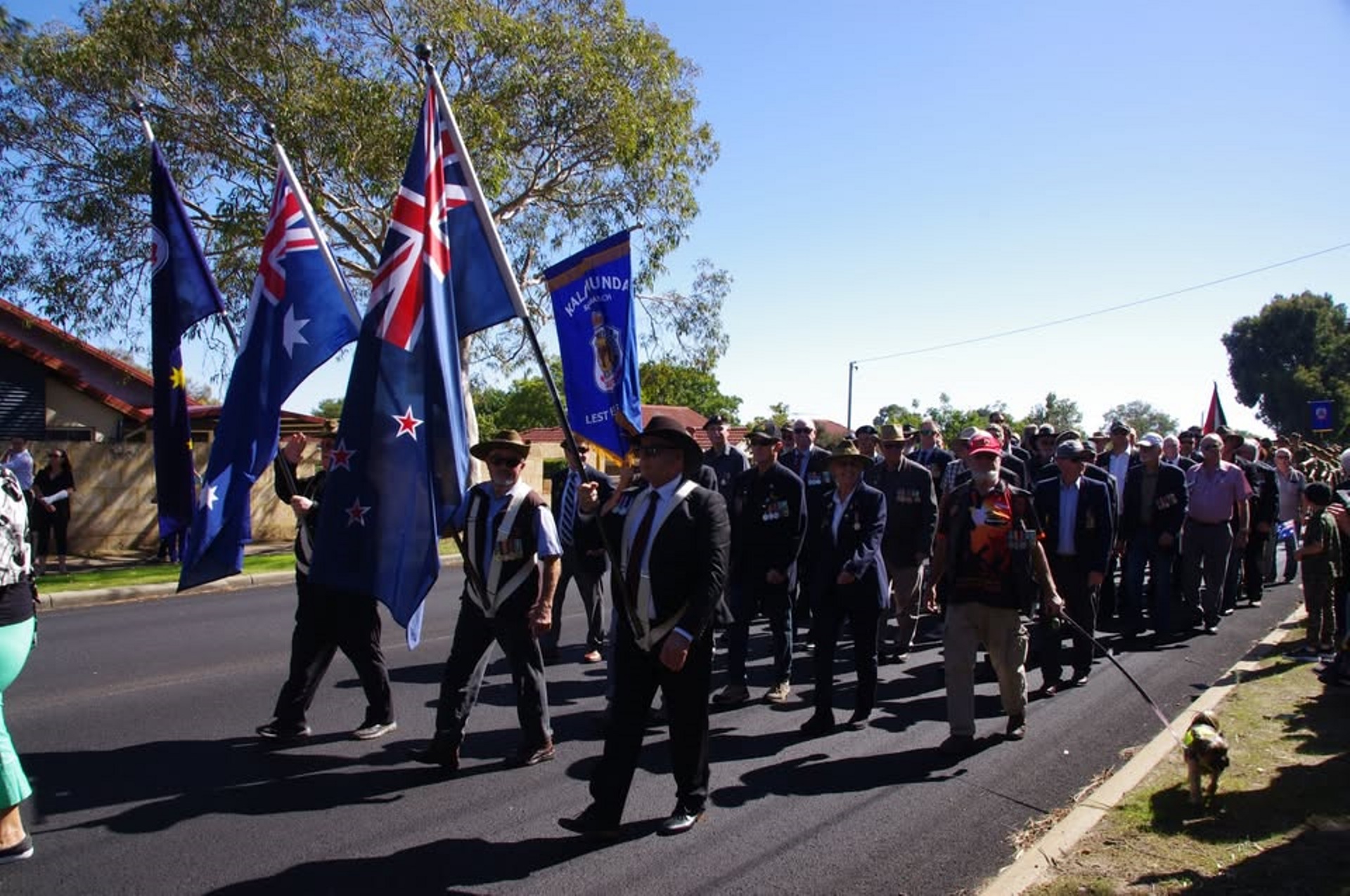 Participants are invited to assemble from 10:30am at Memorial Walk, Stirk Park. The march will commence at 11:00am, travelling along Canning Road to the Kalamunda War Memorial at Kostera Oval.