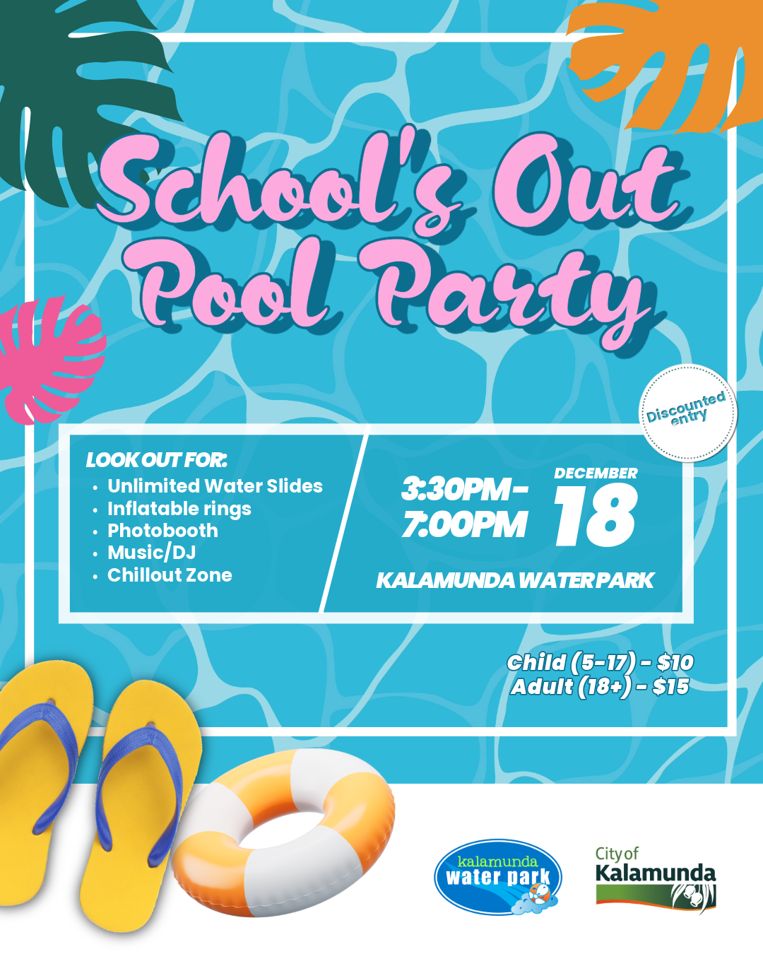 School's Out for 2025! Celebrate the warm weather and the end of the school year with the City of Kalamunda at Kalamunda Water Park!