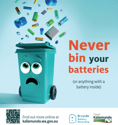 The City of Kalamunda also have recycling hubs available at various locations to drop off batteries, mobile phones, printer cartridges etc.