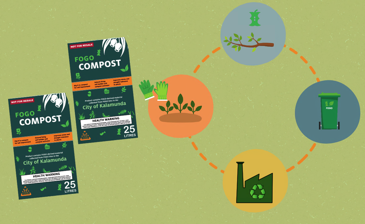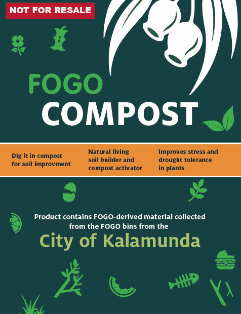 The FOGO Compost is certified to Australian Standard AS4454 and contains FOGO-derived-material collected from FOGO bins in the City of Kalamunda. The FOGO Compost is processed and packed in WA by Purearth.