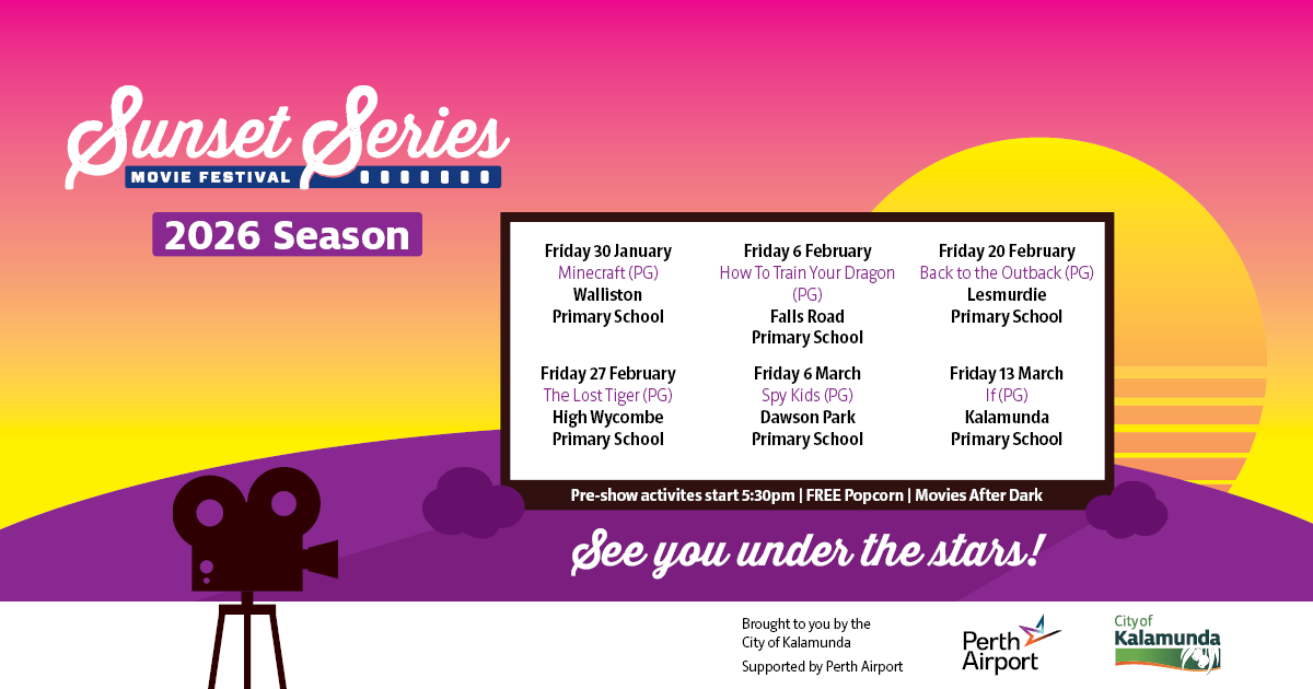 The magic of outdoor movies is back in the City of Kalamunda, with the 2026 Sunset Series kicking off on Friday 30 January 2026 at Walliston Primary School.