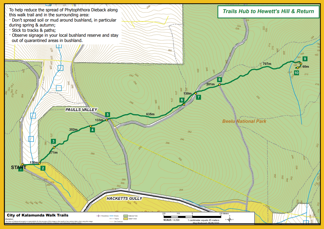 Trails Hub on Paull’s Valley Road, Hackett’s Gully, approximately 15 minutes from Kalamunda in the Beelu National Park.